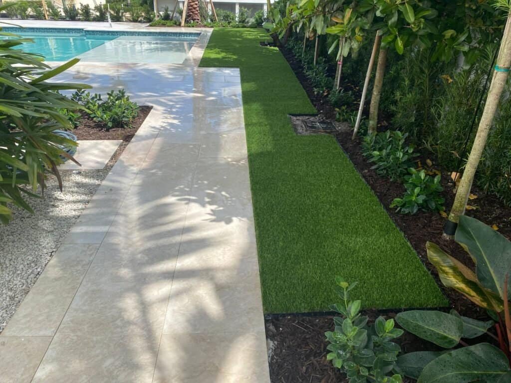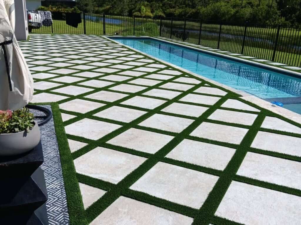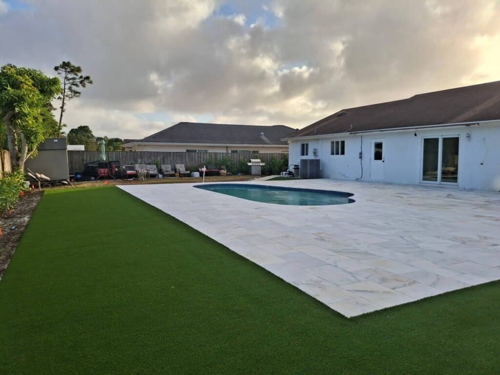 We use high-quality synthetic turf and paver materials that resist fading, cracking, and wear—built to handle Florida’s sun, storms, and daily use.